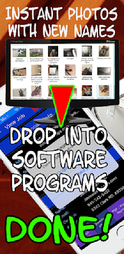 This will save the user from upwards of 15 minutes to over One hour naming and describing all photos in "REAL TIME" while still on the job... No more taking photos, going back to the office computer, loading photos into some program, and then tediously naming the photos and providing a description while typing manually.